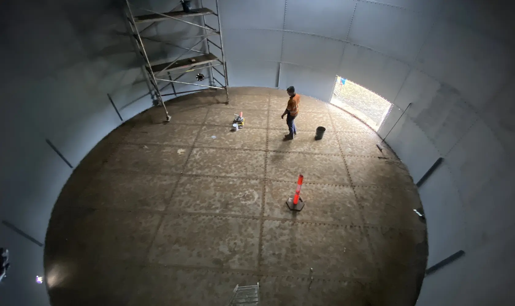 The site undergoes degassing when residual substances are present, atmospheric testing for toxic gases, proper ventilation setup, and rescue system installation. We also conduct safety briefings for workers and standby rescue teams. Raven Tanks oversees the full preparation process from beginning to end.